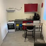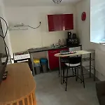 Quiet And Bright Studio In Gorze har ett kök och utrustning för matlagning.